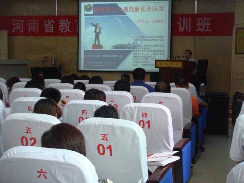 2010年5月,周和生董事長在信陽“ 河南省教育系統(tǒng)審計干部培訓班”上講授“新清單計價規(guī)范解讀及運用”和“新清單模式下建設項目管理審計”。